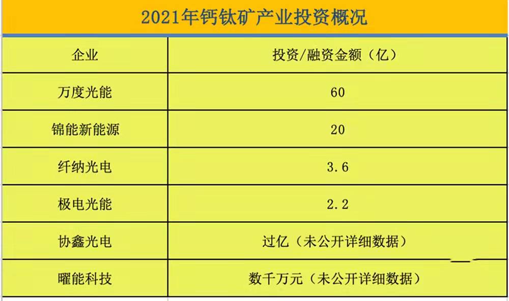 2021年钙钛矿产业投资概况,PV-Tech整理