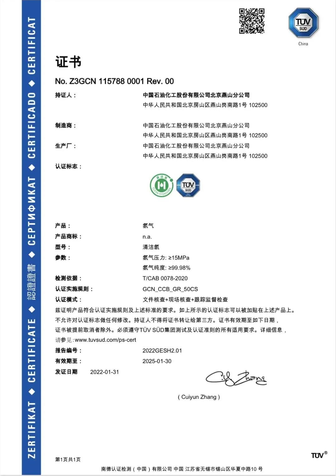 标准的“清洁氢”证书