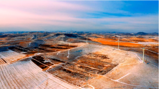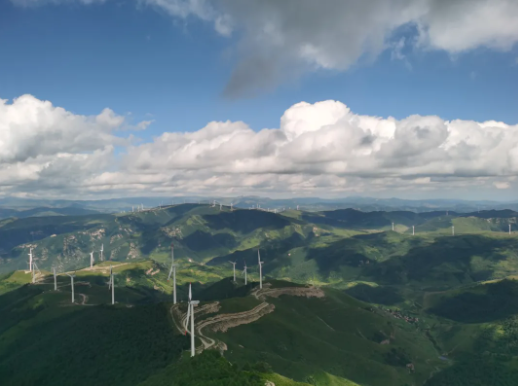 在张家口市张北县,中广核新胜风电场20台风力发电机组徐徐转动。2020年12月31日,中广核新胜风电场顺利全容量并网发电。截至目前,中广核已在张家口地区建成5个风电项目,总装机容量749兆瓦,这些项目年发电量可达14.52亿度,相当于可节约标煤44.29万吨,减少二氧化碳排放129.32万吨。