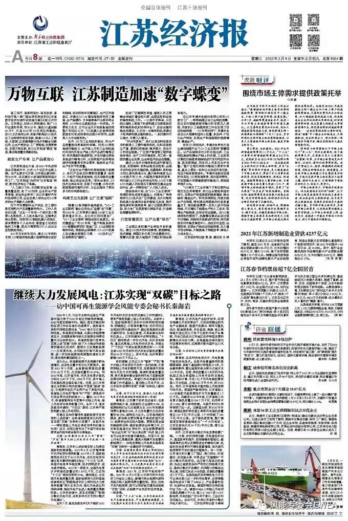 秦海岩:江苏风电产业起步较早,在项目规模化开发的带动下,已形成很健全的风电产业链体系,涵盖开发建设、部件与整机供应、配套服务等,并在盐城、南通、连云港等地打造出百亿乃至千亿级的风电产业集群,风电已经成为江苏地区经济转型发展的新增长点与动力源。这些基地在满足国内市场需求的同时,还源源不断向国外出口风电设备。