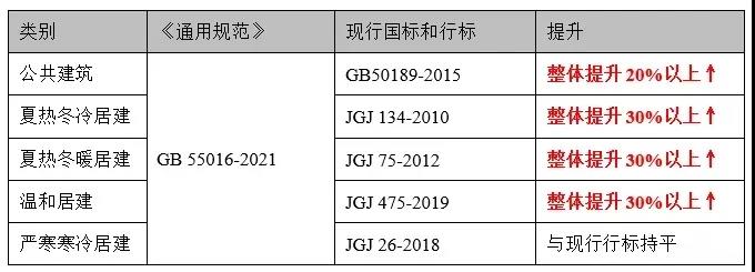 5.新建建筑节能设计水平进一步提升。《通用规范》提高了居住建筑、公共建筑的热工性能限值要求,与大部分地区现行节能标准不同,平均设计能耗水平在现行节能设计国家标准和行业标准的基础上分别降低30%和20%。
