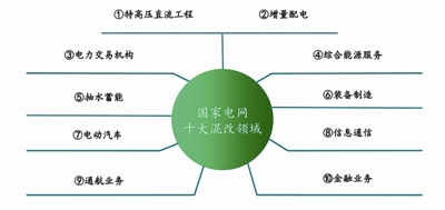 2018年12月25日,国家电网部署抓好十项重点工作混改,主要包括:在特高压直流工程领域引入社会资本、加快推进增量配电改革试点落地见效、积极推进交易机构股份制改造、加大综合能源服务领域合作力度、大力开展抽水蓄能领域投资合作、持续推进装备制造企业分板块整体上市、加快电动汽车公司混合所有制改革、开展信息通信产业混合所有制改革、推进通航业务混合所有制改革、深化金融业务混合所有制改革。“自2018年底发布深化改革十大举措以来,公司在电网、产业、金融领域分类分步实施,努力开创全面深化改革的新局面,目前多个领域实现了重要突破。”罗乾宜表示。