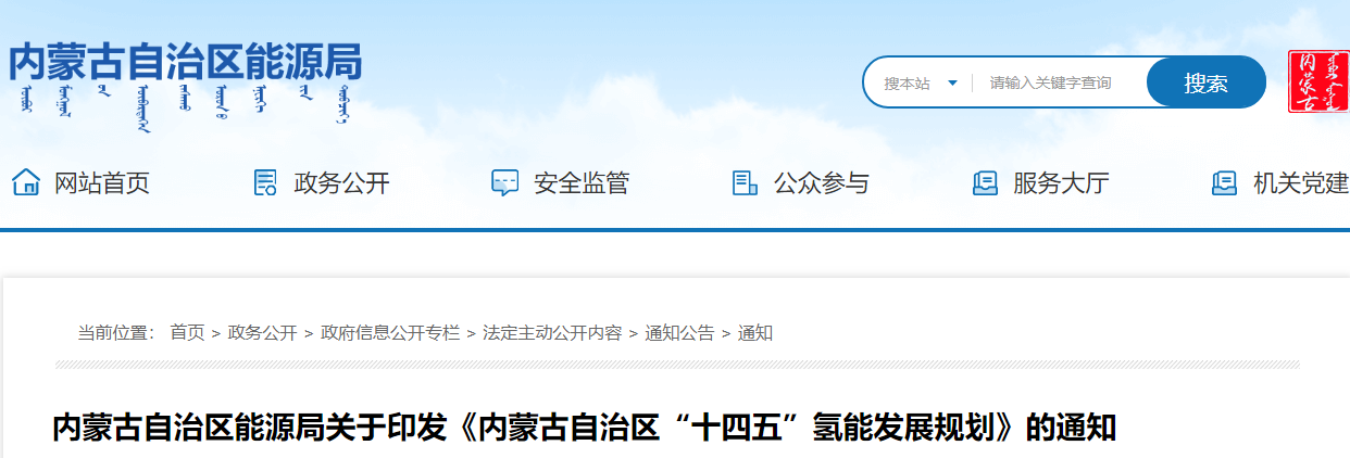 内蒙古自治区能源局关于印发《内蒙古自治区“十四五”氢能发展规划》的通知