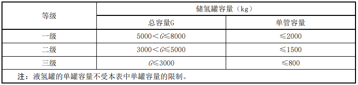 制氢加氢一体站等级划分应符合表1 的规定
