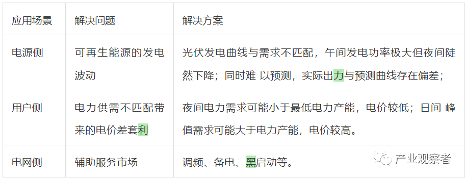 储能的应用场景包括电源侧、电网侧、用户侧(工商业和户用),主要是解决可再生能源不均衡的问题,是智能电网中重要的环节。