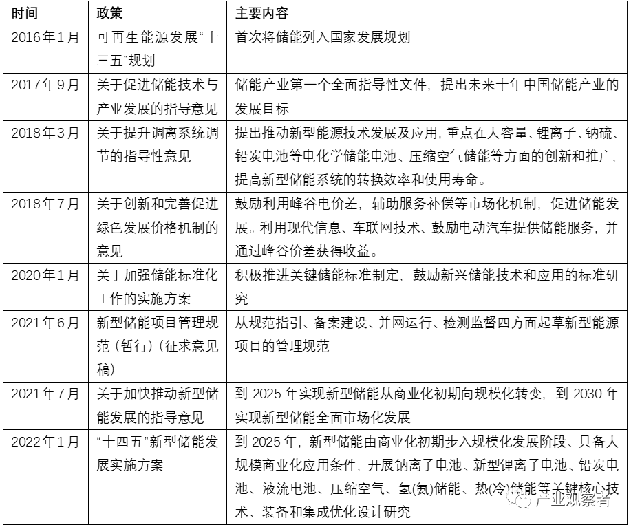 2016 年 3 月,我国首次将储能列入国家发展规划。此后,在国务院及各部委历年发布的《“十 三五”国家战略性新兴产业发展规划》、《中国制造 2025——能源装备实施方案》、 《能源技术革命创新行动计划(2016-2030 年)》、《能源发展“十三五”规划》、 《可再生能源发展“十三五”规划》、《国家创新驱动发展战略纲要》、《关于加快推动新型储能发展的指导意见》、《“十四五”新型储能发展实施方案》等国家重大 发展战略和规划中,均明确提出加快发展高效储能、先进储能技术创新、积极推 进储能技术研发应用、攻克储能关键技术等任务和目标。