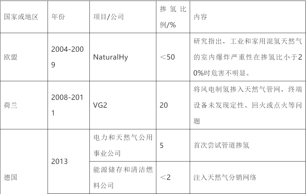 我国早在1993年就有煤气掺氢项目投产,目前我国已建成以及拟建设的混氢管路项目分别位于华北、东北以及西北等地区: