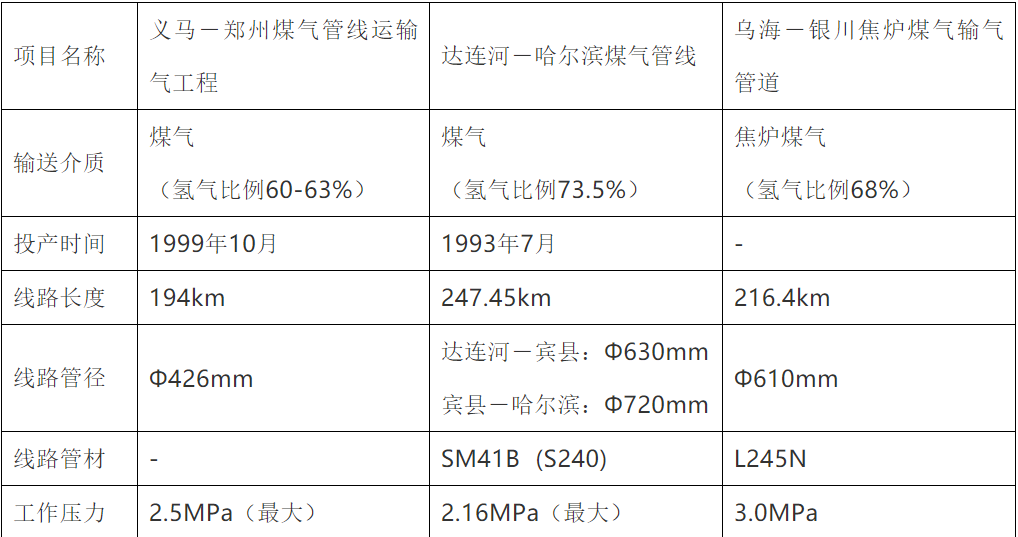该项目在陕煤线进行掺氢可行性论证,是国内主干线首次掺氢可行性论证。该线路全长97km,掺氢比例5%,管径D323.9,管材L360Q无缝钢管,钢管等级x65,设计压力4MPa,一期计划输量4.2万吨/a,二期规划11.7万吨/a。