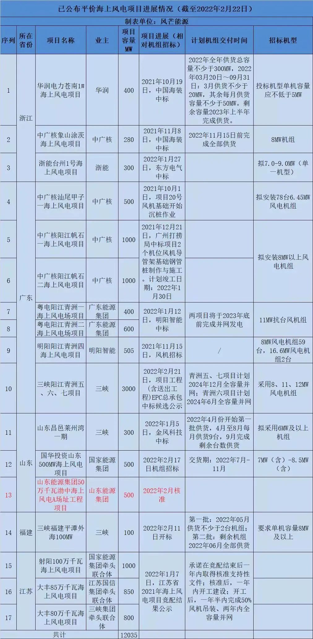 除了2021年规划投产的11个海上风电重点建设项目全部并网发电外,规划在2022年完成的湛江徐闻海上风电项目和华电阳江青洲三海上风电场项目等也已实现并网。