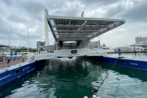 “Energy Observer ”号2020年3月从法国启航,计划用4年时间全球旅行,但疫情打乱了计划,航行一度被迫中断。在重启航行后,“Energy Observer ”计划停靠世界70个港口。在离开印度尼西亚龙目岛后,“Energy Observer ”17天航行1577海里抵达新加坡。