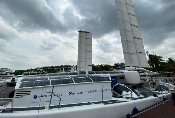 全球第一艘能源自给氢动力船“Energy Observer”号10日抵达新加坡。这是“Energy Observer”开启全球旅行后,首次在亚洲主要港口停靠。