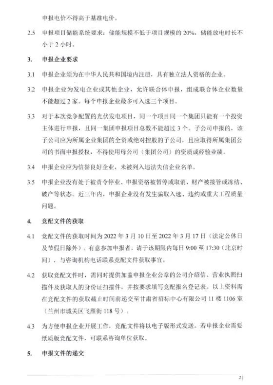 申报项目储能规模不低于项目规模20%,储能放电时长不小于2小时。
