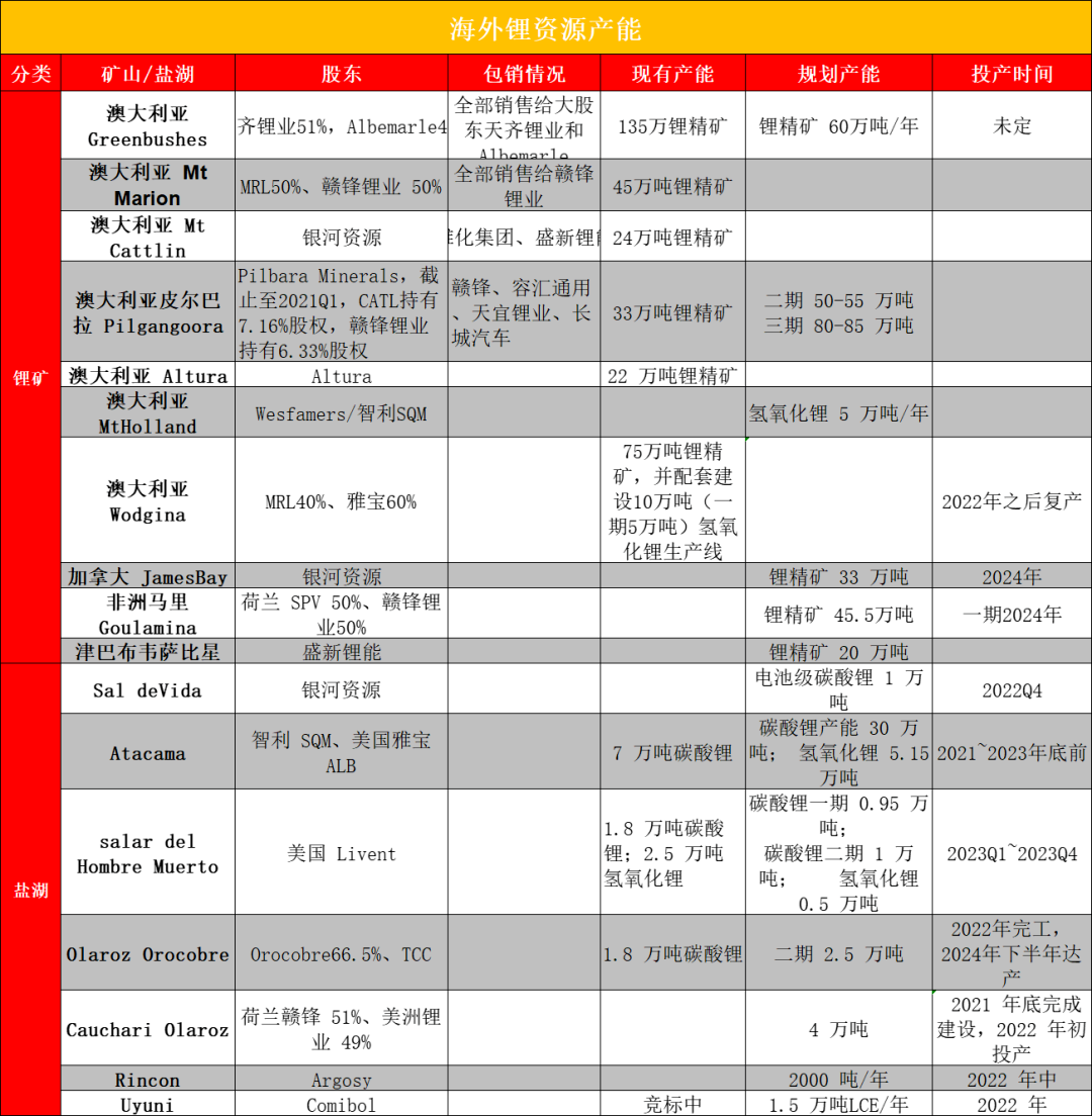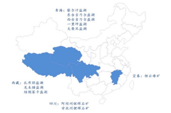 全球的锂矿的供应以西澳锂矿和南美盐湖为主。西澳锂矿包括Greenbushes、Mt Cattlin、Mt Marion、Pilbara、Wodgina(全球已知最大的锂辉石矿)、Altura、 Bald Hills,七大锂矿已成为全球锂价的锚。南美盐湖,成本较低,主要分布在智利、阿根廷和玻利维亚,但产能扩张缓慢。中国锂资源在全球范围内排名第三,仅次于澳大利亚和智利,主要分布在青海、西藏、新疆、四川、江西和湖南等省区。其中四川甘孜州和阿坝州锂辉石资源储量丰富,江西宜春地区主要生产锂云母。