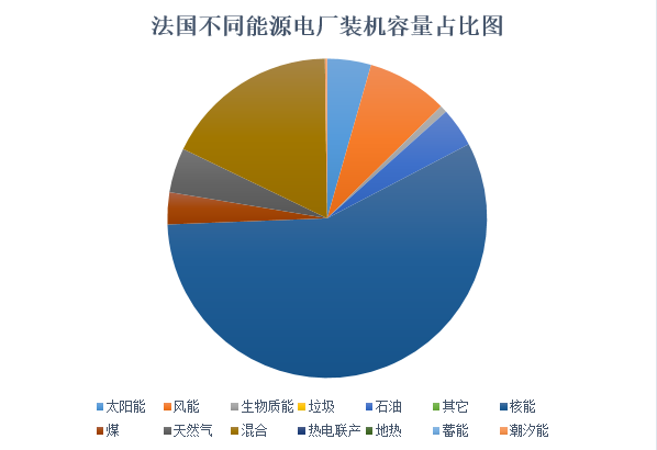英国同样是天然气供电大国,但其第二大供电来源是潮汐能。法国又是另一番景象,核能发电占据总装机容量的57%。