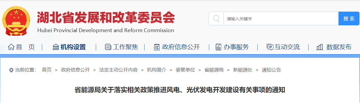 3月14日,湖北省能源局下发《关于落实相关政策推进风电、光伏发电开发建设有关事项的通知》。