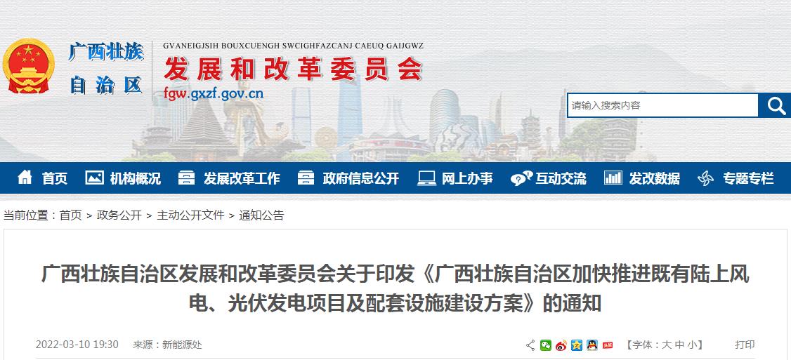 为加快推进我区既有陆上风电、光伏发电项目及配套设施实施,确保如期完成“十四五”规划目标,现将《广西壮族自治区加快推进既有陆上风电、光伏发电项目及配套设施建设方案》印发给你们,请认真贯彻执行。