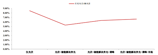 发电侧配储的商业模式主要为:1、光伏+储能解决弃光;2、光伏+储能解决弃光+参与市场化调峰辅助服务。仅光伏发电不用储能,通过测算,内部收益率为为8.48%。如果如果储能加入光伏发电来解决弃光,且仅仅为解决弃光,民生证券的预测显示,那么内部收益率会下降至5.30%。