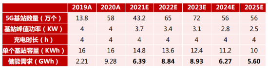 2023年每万人享18个5G基站,2025年每万人享26个(工信部预期数据)。民生证券预计2022-2025年的装机量分别为8.84,8.93,6.27,5.60GWh。新增装机量的21-25年年复合增长率约104.5%。