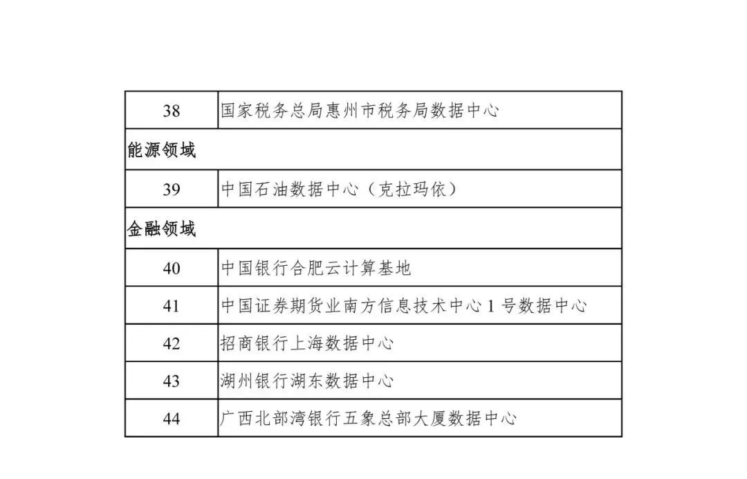 为加快数据中心节能和能效提升,引导数据中心走高效、低碳、集约、循环的绿色发展道路,助力实现碳达峰、碳中和目标,工业和信息化部、国家发展和改革委员会、商务部、国家机关事务管理局、中国银行保险监督管理委员会、国家能源局确定了44家2021年度国家绿色数据中心,如下: