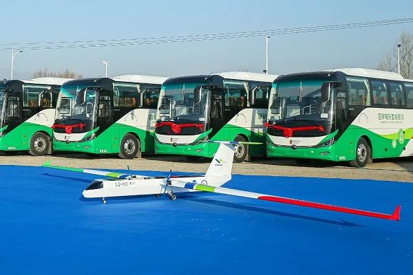 与氢能大巴一同亮相的还有3架搭载“氢腾”空冷燃料电池系统的中国商飞无人机——灵雀-H、ET120、GT30。这些氢动力无人机具有零碳排放、耐低温、长续航等特点,可实现智能网联运行,可应用于巡检、空中摄像、无人货运等领域。