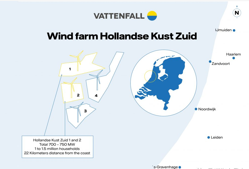 Hollandse Kust Zuid风场规划装机容量1.5GW,由大瀑布在荷子公司Nuon于2018年3月中标,使用140台西门子歌美飒11MW风机,预计将于2023年全面投入运营。中国公司伊莱特为该项目提供塔筒法兰设备。另外,今年1月31日也就是中国的除夕,一艘失去控制的货船在这座海上风电场附近漂流,并与风场的升压站导管架基础、风机单桩基础相撞,造成基础部分损坏。