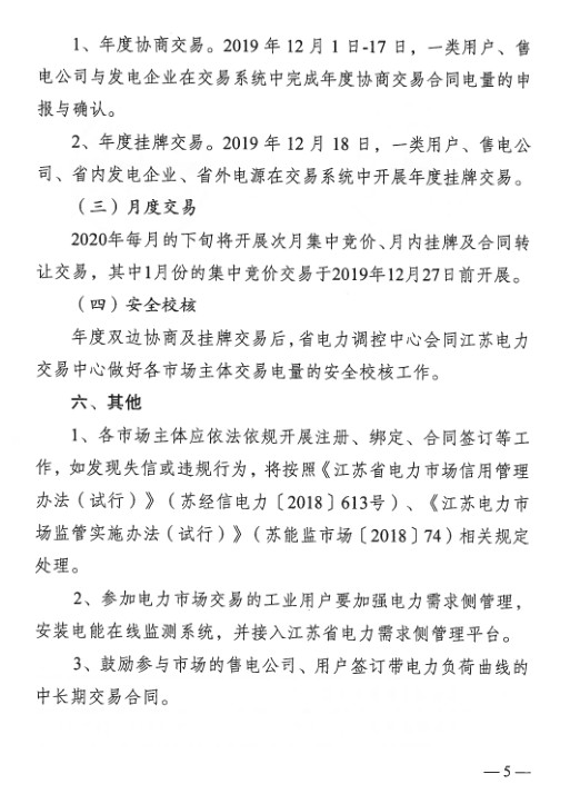 江苏省《关于开展2020年电力市场交易的通知》发布