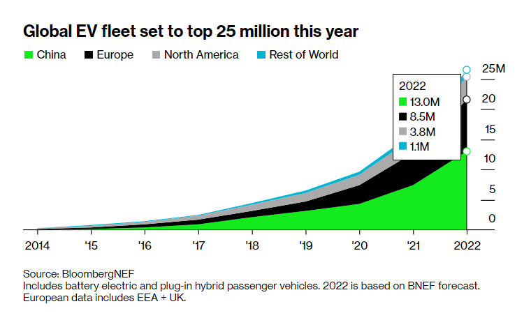 未来几年,电动汽车的普及将取得显著进展,但这会是一项艰巨的任务。据BNEF估计,全球轻型乘用车保有量约为12亿辆,而到2022年底,只有略超过2%的轻型乘用车将是电动汽车。虽然我们还有很长的路要走,但向电动汽车转型的势头已经形成。