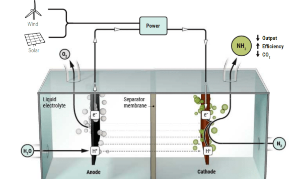2021年6月,澳大利亚的Jupiter Ionics公司采取了一种全新的电化学方法制取氨,可以大幅度减少与目前的Haber-Bosch工艺有关的温室气体排放。该方法是一种使用与锂电池类似的电解质电池来制备氨气。Jupiter Ionics的方法使用可再生能源电解从空气中分离出氮气,还原生成氮化锂,从水中分离出氢气,通过电氧化还原以产生氨。这意味着氨可以完完全全成为“绿色生产”。Suryanto等人报告用四烷基膦酸盐代替乙醇。这种阳离子可以稳定地经历去质子化-再质子化循环,并且提高了介质的离子电导率。Jupiter Ionics表示已获得250万美元的资金,以扩大该技术的商业用途。
