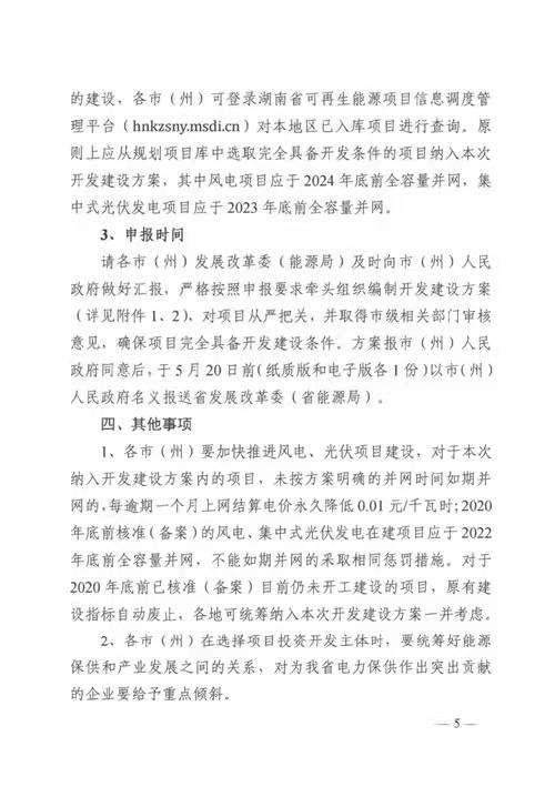 在申报时间方面,方案报市(州)人民政府同意后,于5月20日前(纸质版和电子版各1份)以市(州)人民政府名义报送省发展改革委(省能源局).