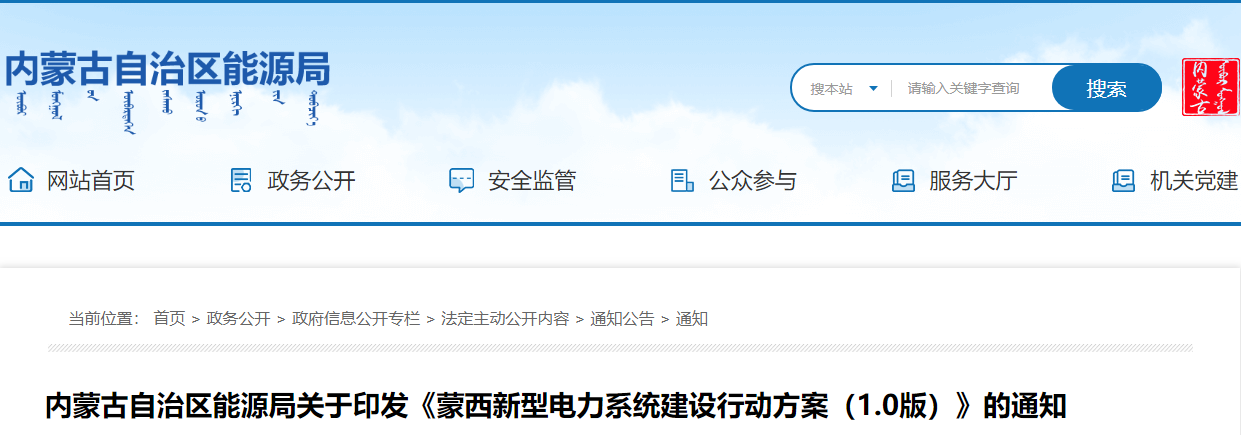 内蒙古自治区能源局关于印发《蒙西新型电力系统建设行动方案(1.0版)》的通知