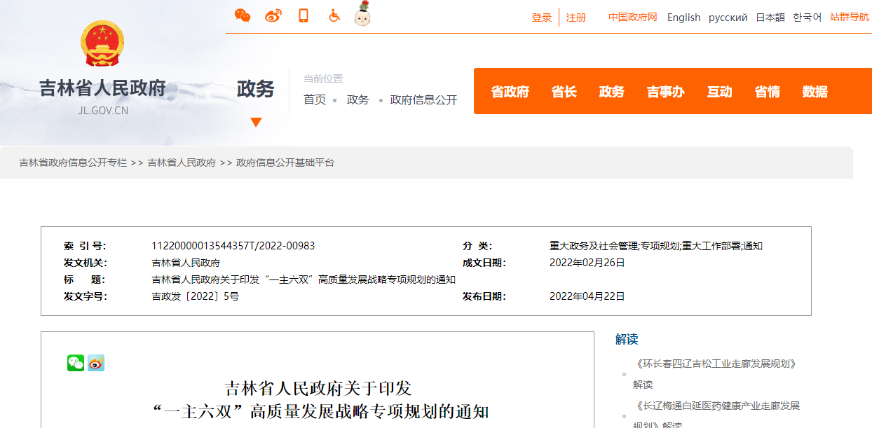 近日,吉林省人民政府印发《“一主六双”高质量发展战略专项规划》,其中氢能方面指出: