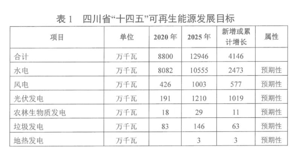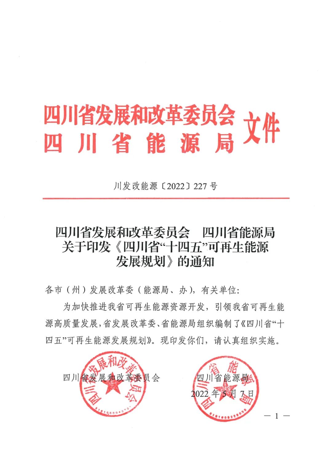5月7日,四川省发改委、能源局印发了关于《四川省“十四五”可再生能源发展规划》的通知。
