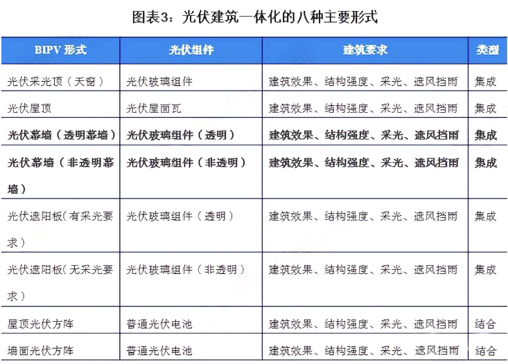 光伏幕墙是光伏建筑一体化的重要形式。从目前来看,光伏与建筑的结合有两种方式:一种是建筑与光伏系统相结合另外一种是建筑与光伏器件相结合。主要有以下八种: