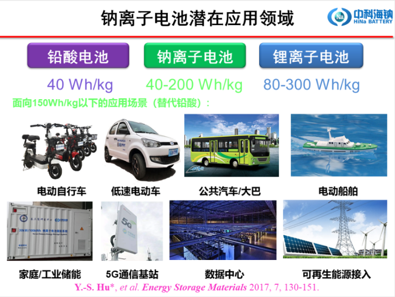 面对巨大的储能市场,钠离子电池以其低成本、长寿命和高安全的诸多优势有望在低速电动车、电动船、数据中心、通讯基站、家庭/工业储能、可再生能源大规模接入和智能电网等多个领域快速发展(图2),提升我国在储能技术领域的竞争力与影响力。
