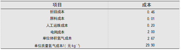 (4)工业用电价格 0. 4 元/ kWh,每 1 m3氢气耗电 4. 5 kWh;