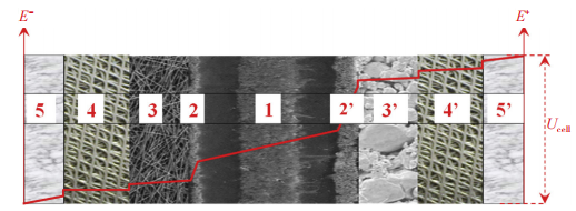 1-质子交换膜,2/2’-催化层,3/3’-多孔传递层,