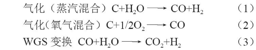 煤制氢主要工艺是将煤与氧气或蒸汽混合,在高温下转化为以H2和CO为主的混合气,后经水煤气变换(WGS)、脱除酸气、氢气提纯等流程,获得具有高纯度的氢气产品。煤气化制氢过程中主要发生的有效反应如下: