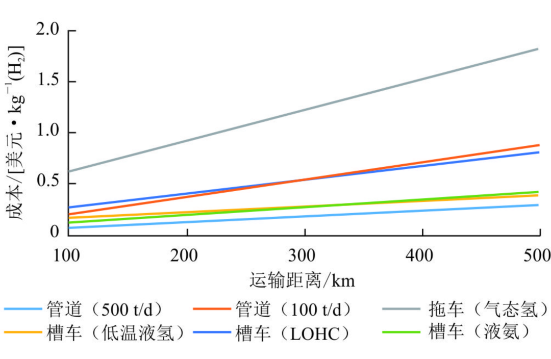 图1 | 几种储运技术成本与运输距离关系图