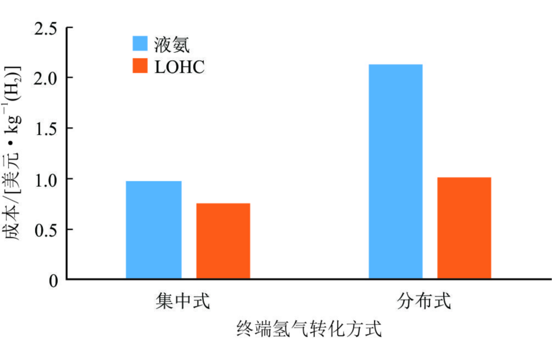 图2 | 液氨与LOHC终端氢气转化成本图