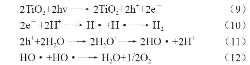 光催化制氢技术旨在利用光合成技术驱动化学反应,从水或有机物中制取氢气,目前研究最为广泛亦最具前景的是光解水制氢技术。光解水制氢技术的实质是利用半导体材料作为催化剂驱动水的分解。根据固体材料的能带理论,当入射光子的能量大于半导体光催化剂的带隙时,电子可以从价带(VB)激发到导带(CB),并分别产生光生空穴和电子对,空穴将水中的OH-氧化得到O2,电子将水中的H+还原生成H2。以典型的纳米TiO2催化剂为例 ,光解水制氢反应如下: