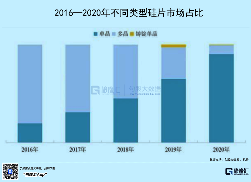 隆基创立于2000年以半导体起家,于2007年布局光伏单晶体硅片。在这个行业深耕了10多年,自主研发了电池端PERC、硅棒端RCZ、硅片金刚线切割等技术,叠加国家“领导者”计划推动,把单晶体硅片的成本大幅下降,让行业主流的多晶体硅几乎全部转移到单晶体硅路线。隆基经过这一役,也从小厂跃升为全球光伏龙头。