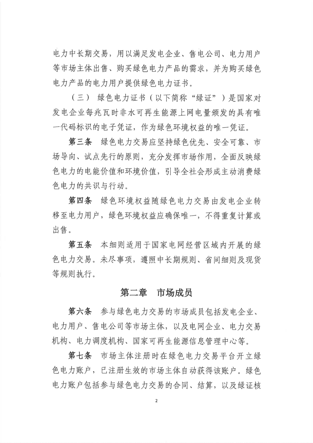 2)绿色电力交易:电力用户或售电公司与绿色电力发电企业依据规则同步开展电力中长期交易和绿证认购交易的过程。在绿色电力供应范围内,电力用户或售电公司与绿色电力发电企业建立绿证认购关系,选择通过电网企业供电的方式获得绿色电力,属于绿色电力交易范畴。