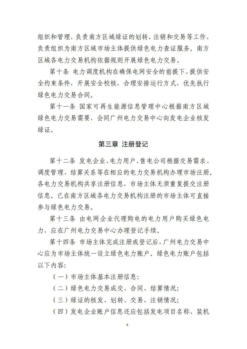 4)电力交易机构:广州电力交易中心负责南方区域绿色电力交易组织和管理,负责南方区域绿证的划转、注销和交易等工作,负责组织为南方区域市场主体提供绿色电力查证服务。南方区域各电力交易机构依据规则开展绿色电力交易。