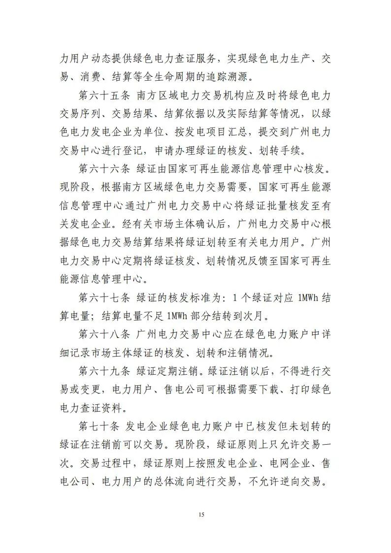 6)国家可再生能源信息管理中心:根据南方区域绿色电力交易需要,会同广州电力交易中心向发电企业核发绿证。