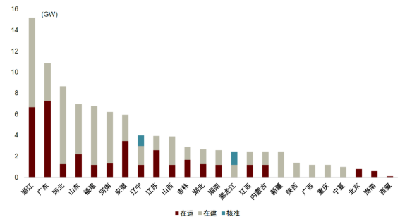 各省市在建、在运抽水蓄能装机(2022年4月)