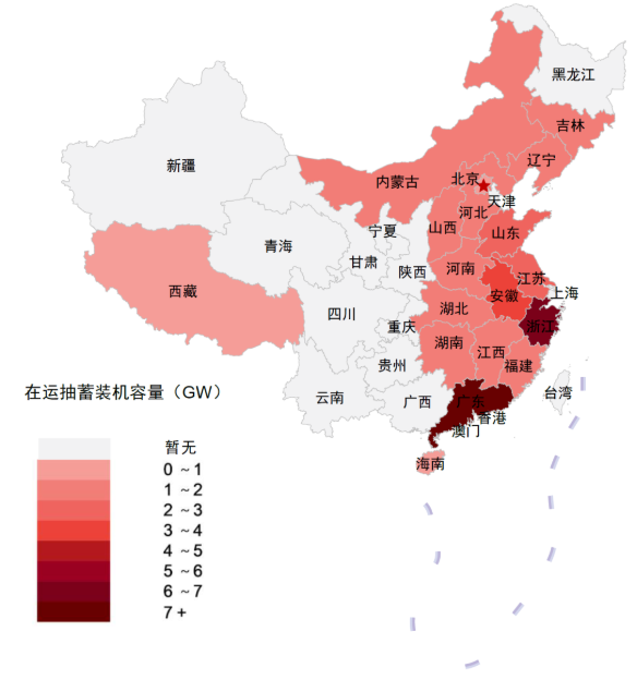 当前抽水蓄能装机主要集中在我国东南部 (统计截至2022年4月)