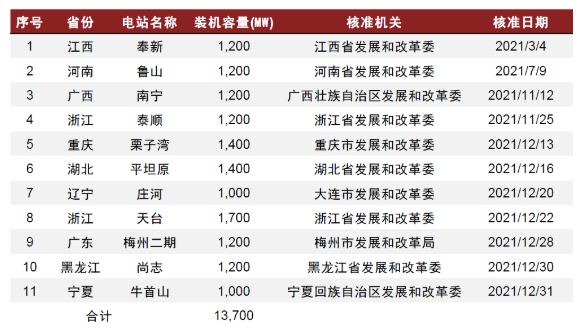 2021年抽水蓄能项目核准情况