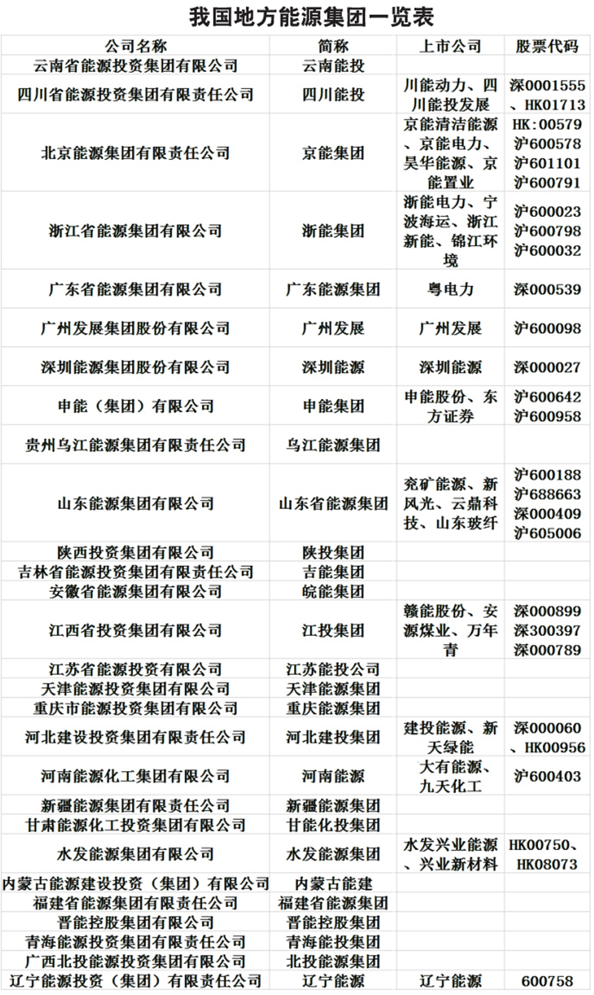 据不完全统计,我国有不少于28家地方能源集团。地方能源集团有地方国资委控股,是能源市场中不可忽视的重要力量。