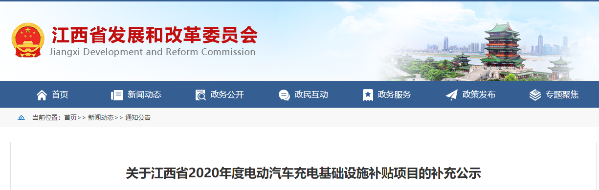 关于江西省2020年度电动汽车充电基础设施补贴项目的补充公示