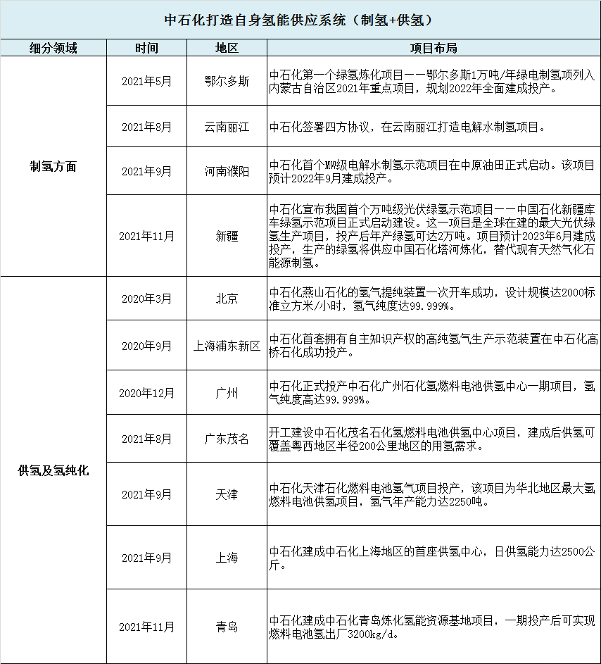 在布局化工副产氢的同时,基于“绿氢”是未来发展方向,中石化也积极推进绿电制氢。以下是中石化在这两方面的相关布局: